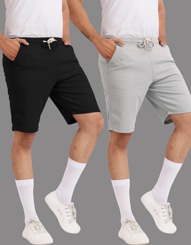 Yazole Solid Men Black, Grey Basic Shorts