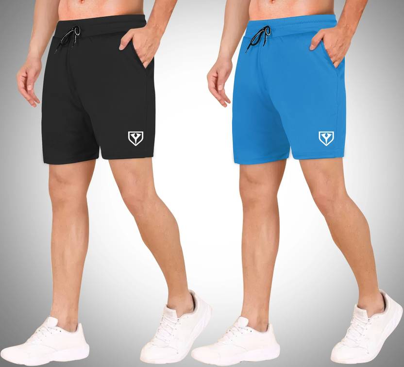 Yazole Solid Men Black, Light Blue Sports Shorts
