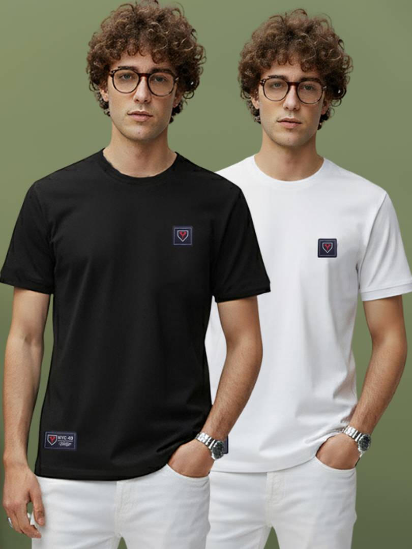 Yazole Solid Men Round Neck Black, White T-Shirt