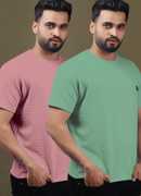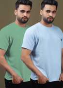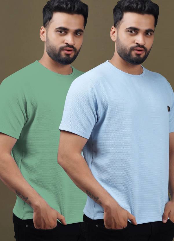 Yazole Solid Men Round Neck Light Blue, Light Green T-Shirt