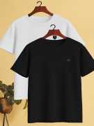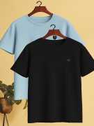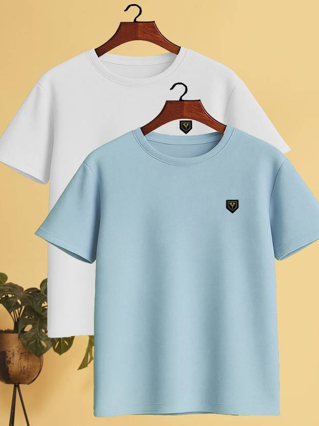 Yazole Solid Men Round Neck Light Blue, White T-Shirt