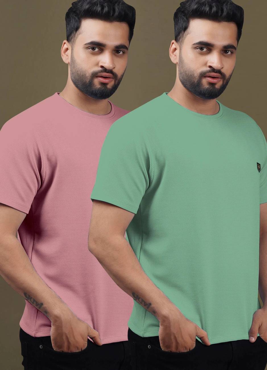 Yazole Solid Men Round Neck Pink, Light Green T-Shirt