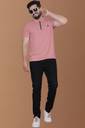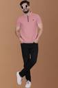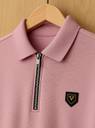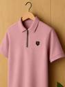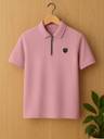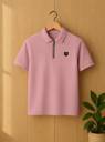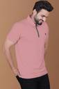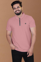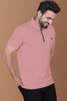 Yazole Solid Men Zip Neck Pink T-Shirt