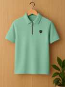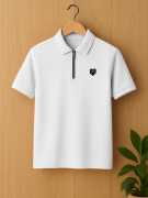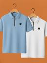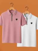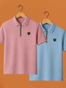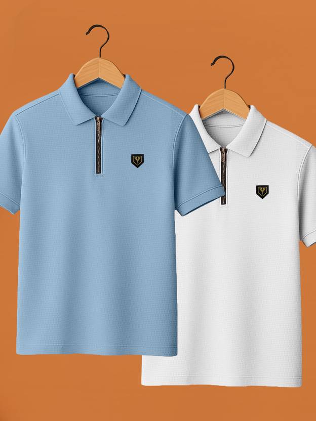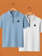 Yazole Solid Men Zip Neck White, Light Blue T-Shirt