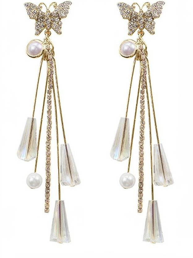 1)Evergreen butterfly theme sparkling hi quality crystal drop earring - stylish latest trend casual/ leisure/ party wear earring. unique d to mm add in your h picked jewellery selection. 2)Beautiful Looks at One Glance- with Intricate High Polish creates Glamorous Reflections and adds Luxurious Looks. 3)Produced under Quality Control; One by One Checking; Focus on Detail Processing. Top Quality/ Latest Trend Design/Anty-Allergy. 4)Size : Length - 8.5 cm,Width - 2 cm,Skin friendly: Nickel free and lead free as per international standards. Anti-allergic and safe for skin. 5)Gift for women! - ideal valentine, birthday, anniversary gift for someone you ? love ?. with our packaging box, you do not need to opt-in for any additional gift packaging. the product comes in a beautiful elegant ready-to-gift box.