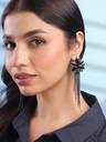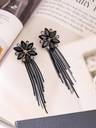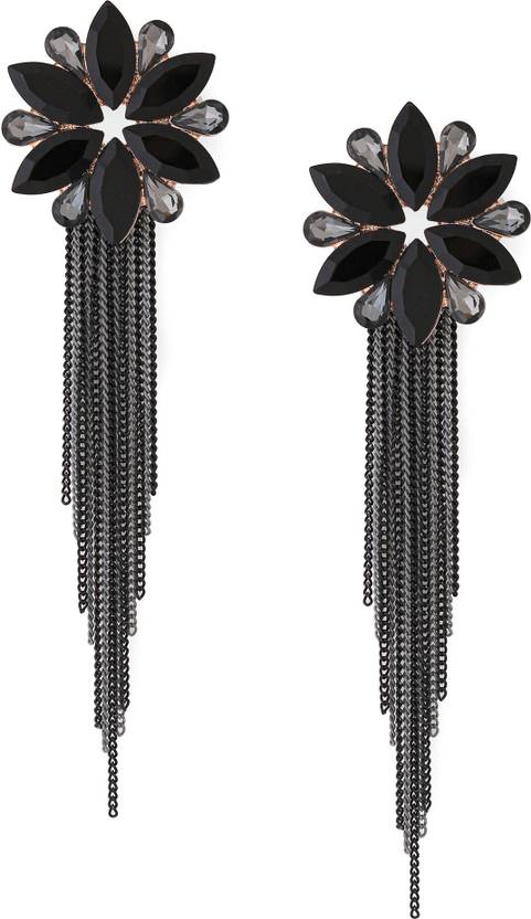 Earrings for Women Floral Shaped Crystal Black Long Chain Dangler Earrings