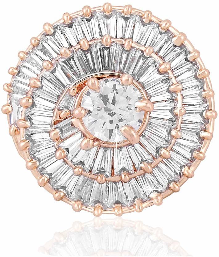 YELLOW CHIMES Elegant A5 Grade AD/American Sparkling Crystal 18K Rosegold Plated Celebrity Traditional Adjustable Rings Copper Crystal Ring