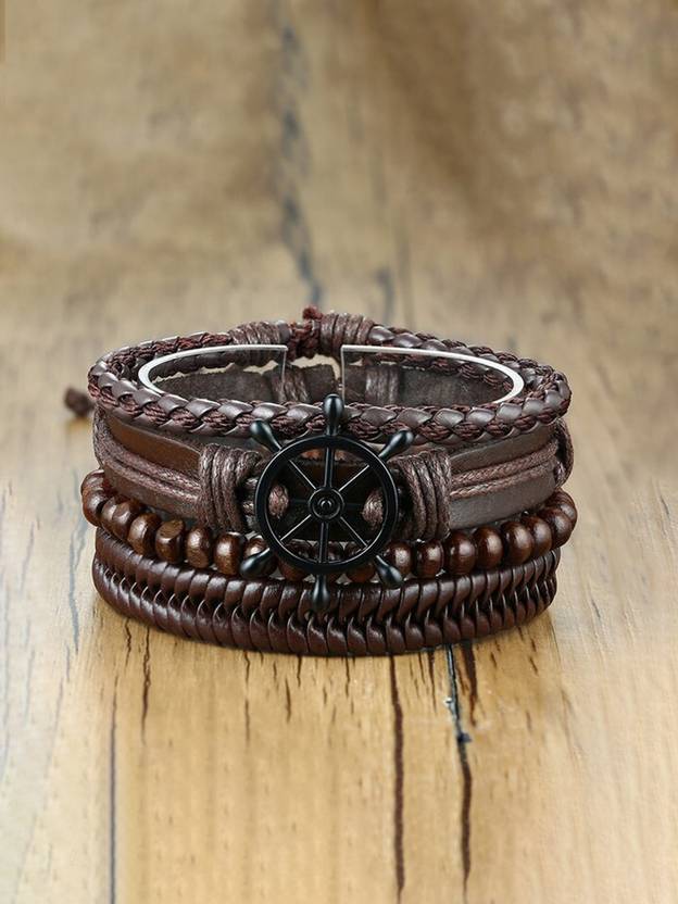 YELLOW CHIMES Leather Bracelet Set (Pack of 4)