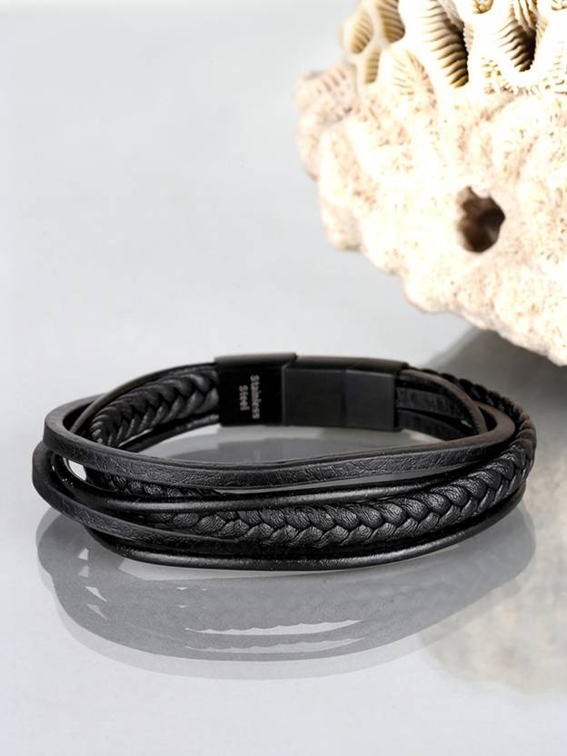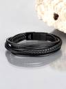 High Quality Double Magnetic-Clasp Leather Braided Multi-Layer Wrap Mens Bracelet