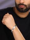 This men's bracelet is a perfect blend of style and durability, ideal for the modern man seeking a versatile accessory. Crafted from durable stainless steel, this silver bracelet features a secure locking mechanism, praised by people for its reliability, ensuring the bracelet stays put whether you're hitting the gym, or going out for the night. This men's bracelet makes a perfect gift for your brother, husband, or friend, especially for special occasions. This bracelet comes in a single size and is delivered in an elegant box, making it a perfect present. This Stainless-Steel Silver Kada bracelet is not just a bracelet, it's a statement piece that speaks volumes about your taste and complements any outfit, making it an essential addition to your accessories collection. With its superior build quality and aesthetic design, this kada bracelet is more than just an accessory, it seamlessly transitions from casual to formal settings, allowing you to redefine your style effortlessly.