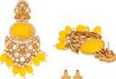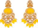 Traditional Yellow Stone Long Earrings | Gold Plated Kundan Beads Earrings