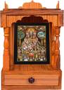 temple has been designed for your home with supreme quality material and art work done by experienced artist. A perfect decor for your divine space. this alluring temple nook made from solid wood and crafted with the most exquisite hand painted work. Rich natural colours painted with various motifs in white for beautiful contrast. The nook comes with a pull out drawer to store your pooja essentials Completely Handcrafted and Hand painted. Wall mounted it can be hanged on wall, It’s a beautiful handcrafted home temple, Designed for your home for keeping your idol, for place where you worship God.