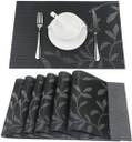 YELONA Rectangular Pack of 6 Table Placemat (Black, PVC)