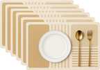 YELONA Rectangular Pack of 6 Table Placemat (Brown, Beige, Gold, Leather)