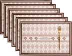 YELONA Rectangular Pack of 6 Table Placemat (Brown, Beige, Gold, Leather)