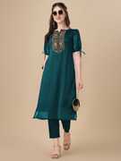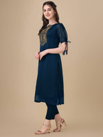 yeoja creation Women Embroidered Straight Kurta (Dark Blue)