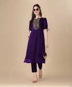 Featuring an attractive pattern, this women's kurta showcases a solid pattern with delicate floral embroidery placed on the yoke. The embroidery introduces a soft accent that complements the overall simplicity of the design. Moreover, the placement of the embroidery on the yoke adds a thoughtful detail that gently enhances the overall look.