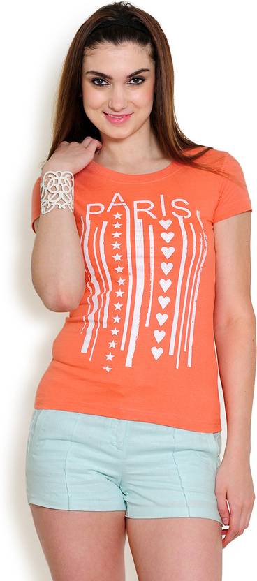 YEPME Casual Regular Sleeves Graphic Print Women Orange Top