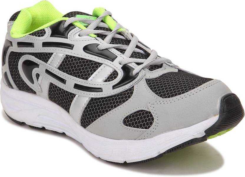 Pump up your running speed in these green and black joggers sports shoes by Yepme. Made from a unique blend of faux leather mesh with Ethylene vinyl acetate and rubber, the exquisite number guarantees breathability and comfort to the foot. The round tor box and lace-up closure ensures secured fit and easy movement while jogging. Style yours with track pants and graphic tees for stunning look!