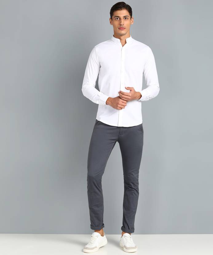 This casual shirt comens in Pure white color and Solid pattern.it is a Mandarin collar shirt and comes in cotton blend fabric.The style you want and the feel you need all rolled into this shirt.