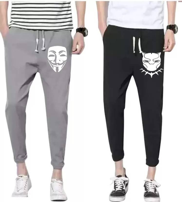 Pack of 2 Men Printed Black Track Pants