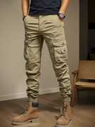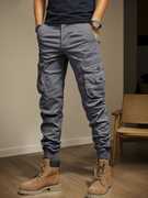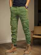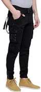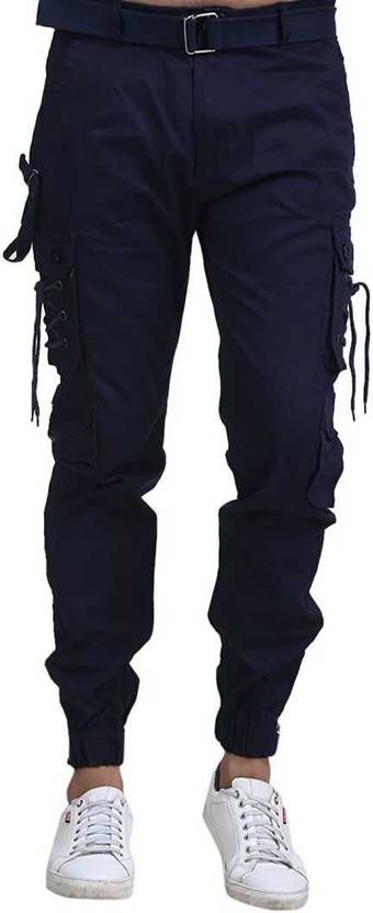 Fit Type: Slim Fit, Rise Type: Mid Rise, Leg Style: Tapered with ribbed cuffs, Pocket Type: Multiple – Side cargo, back flap, and front slash pockets, Waistband: Elasticated with adjustable drawstring