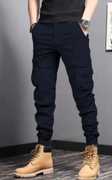 Fit Type: Slim Fit, Rise Type: Mid Rise, Leg Style: Tapered with ribbed cuffs, Pocket Type: Multiple β Side cargo, back flap, and front slash pockets, Waistband: Elasticated with adjustable drawstring