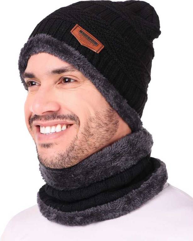 Solid Woolen Winter Cap with Neck Scarf Cap