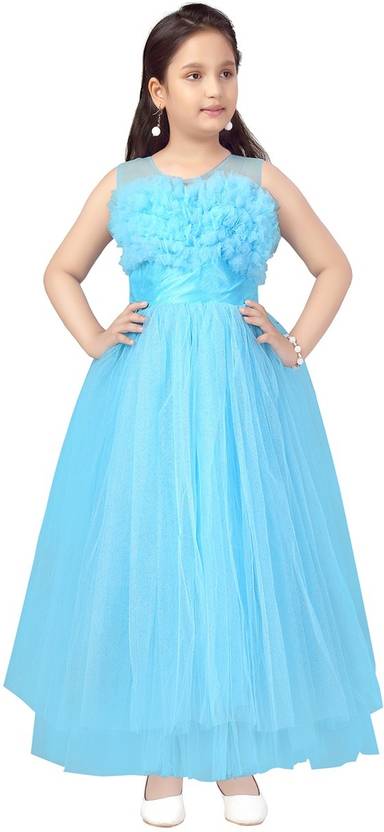 Girls Maxi/Full Length Party Dress (Light Blue, Sleeveless)