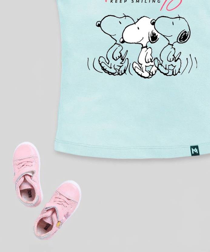 YK X Minute Mirth Girls Printed Pure Cotton Regular T Shirt (Blue, Pack of 1)
