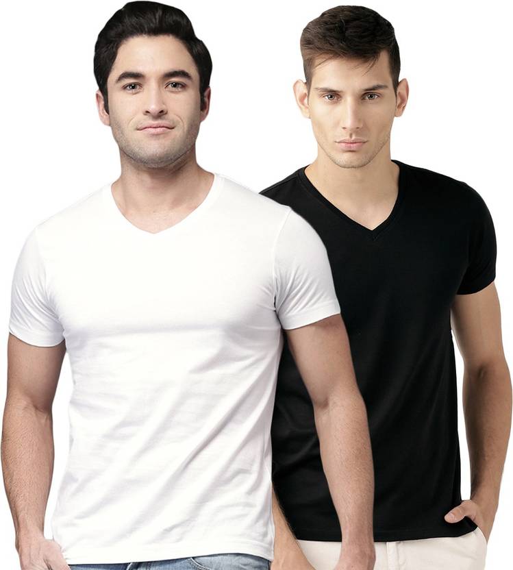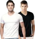 YKOS Pack of 2 Men Solid V Neck Cotton Blend White, Black T-Shirt