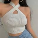 stylish woman HALTER NECK top: :solid plain slim fit top for woman:: casual top for woman
