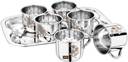 YM Stainless Steel Tea & Coffee Cup, Plate, Tray Serving Set (Pack of 7)