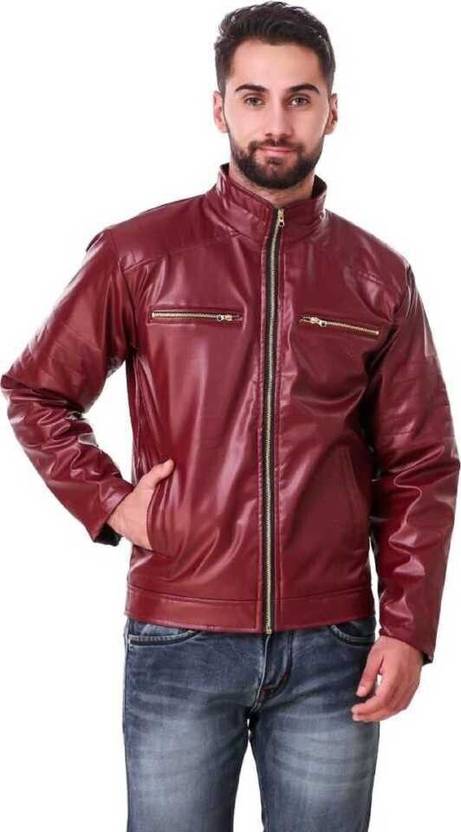 This stylish regular fit jacket in the display has full sleave and stand collar. Inside one pocket and branded zippers, this faux leather jacket is light in weight and will ensure cofort all time.