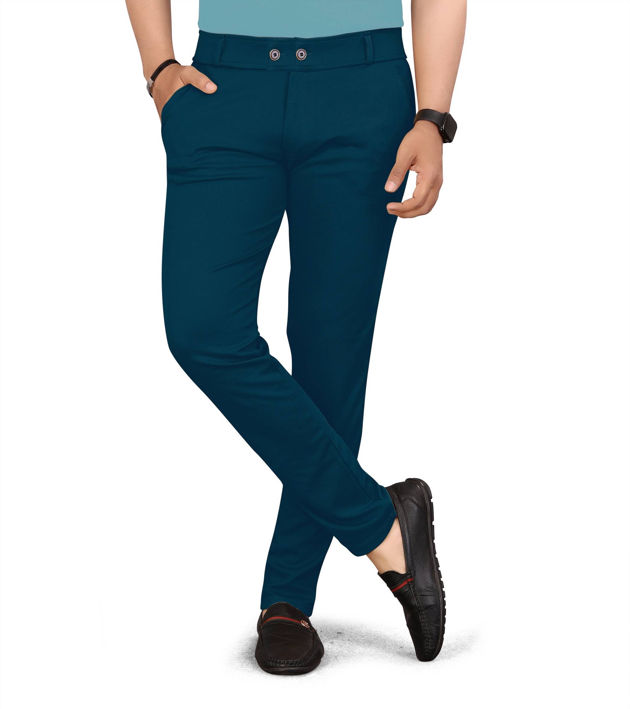 VEER TRENDS presents this lycra blend stretchable fabric trouser pants for men. Feel comfortable with this trousers in any ocassion. You can wear this trouser pant for casual and office use.