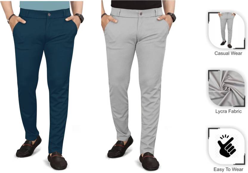 Pack of 2 Men Regular Fit Multicolor Lycra Blend Trousers