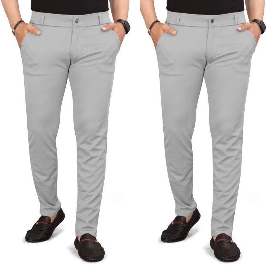 Pack of 2 Men Regular Fit Multicolor Lycra Blend Trousers