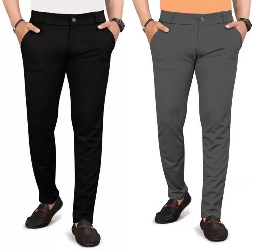 Pack of 2 Men Regular Fit Black, Grey Lycra Blend Trousers