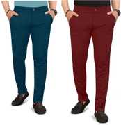Pack of 2 Men Regular Fit Dark Blue, Maroon Lycra Blend Trousers