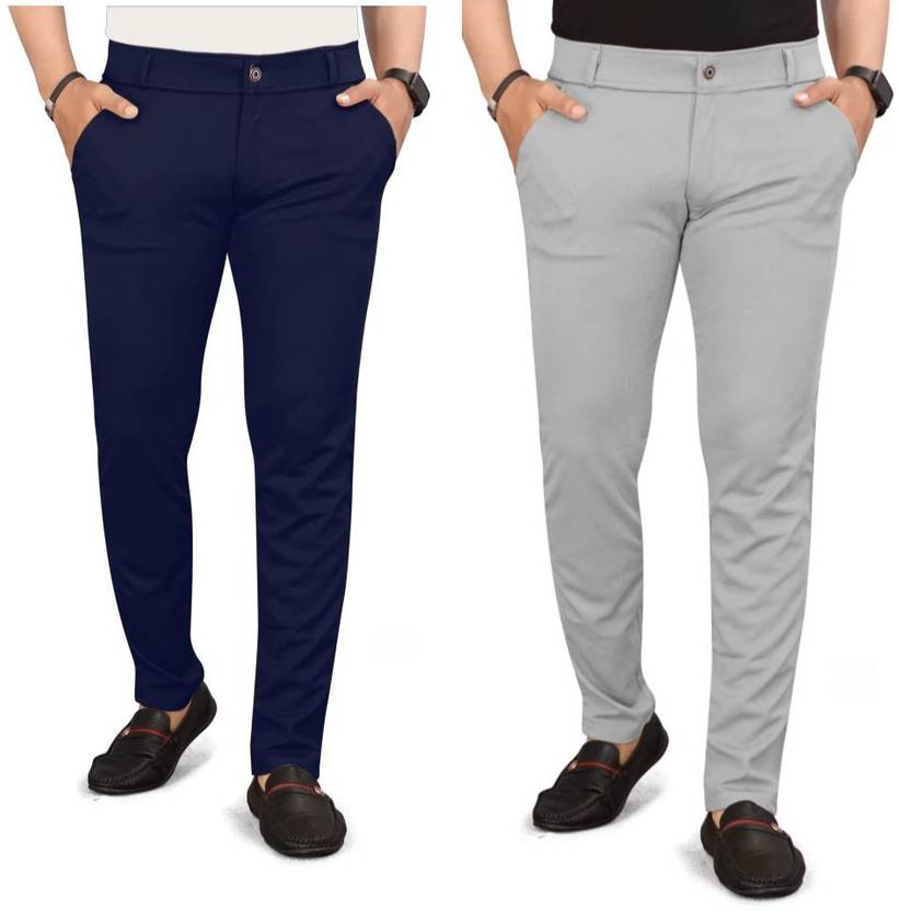 Pack of 2 Men Regular Fit Multicolor Lycra Blend Trousers