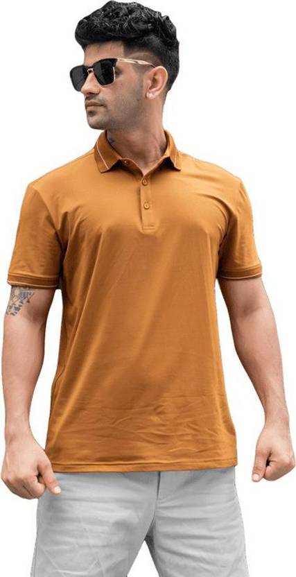 Men Solid Polo Neck Cotton Blend Brown T-Shirt