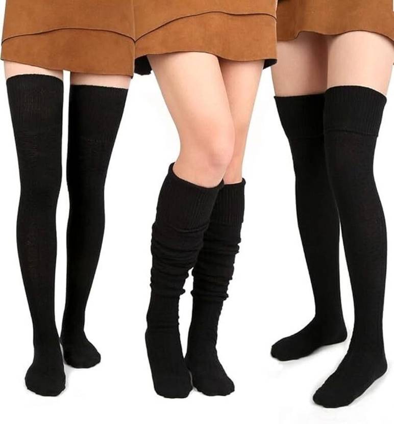 Trendy Black Knee High Socks for Women – Soft & Warm Woolen Socks