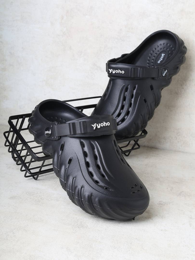 Presenting ‘Yoho Wavy Clogs’: the trendy twist on clogs sandals! Say hello to chunky curves and unbeatable comfort. Their padded footbed and lightweight build keeps you cosy, wherever you go. Crafted with soft EVA material, they are odour-free and durable . They're water-friendly and quick-drying, suitable for a rainy or poolside day. Available in chic colours, these clogs make a bold statement. Slide into trendy style with Yoho Wavy Clogs today!