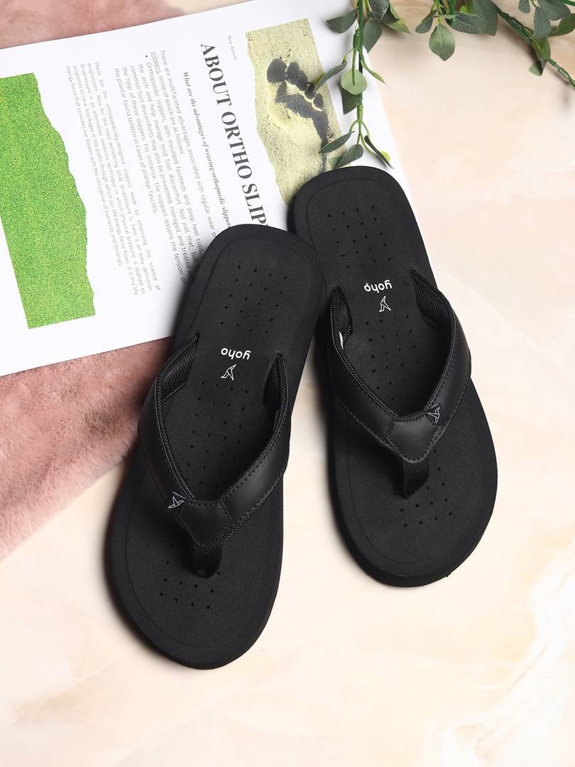 yoho Women ArchFlex Women ortho slippers with arch support |Soft Flip Flops (Black , 8)