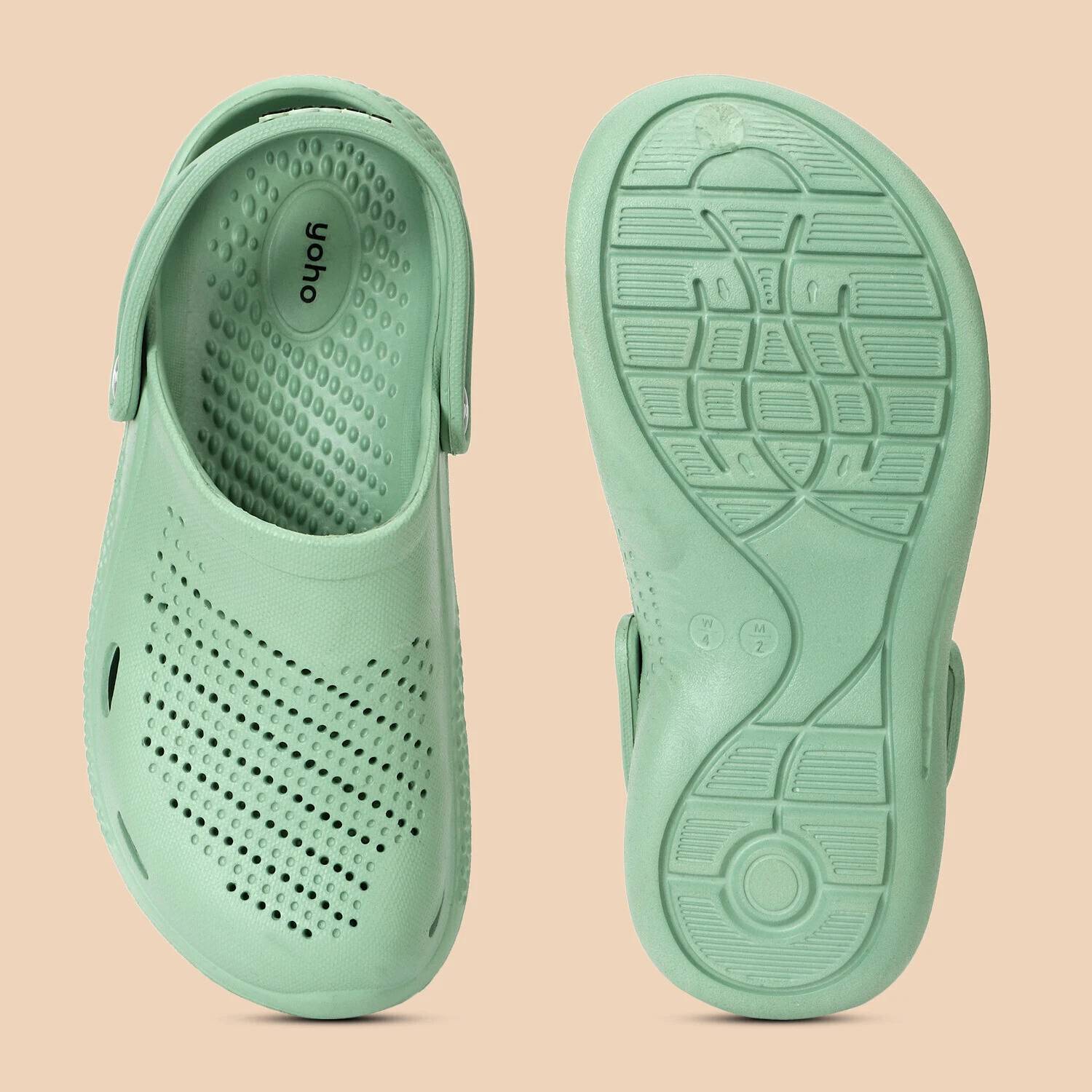 Yoho Classic Clogs: reimagining comfort for the ever-green classic clogs! With a padded footbed and a lightweight construction, they're perfect for wearing all day long. Whether you're indoors or outdoors, these clogs have got you covered. Made from durable EVA material, they're resistant to smell (odour) and built to last. Their water-friendly design and quick-drying feature make them ideal for all seasons. Coming in trendy colours, these clogs make a statement wherever you go. Classic gets trendy with Yoho Classic Clogs!