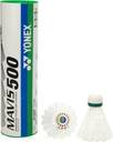 The Yonex Mavis 500 shuttlecock offers a fast recovery time of 0.02 seconds when smashed.