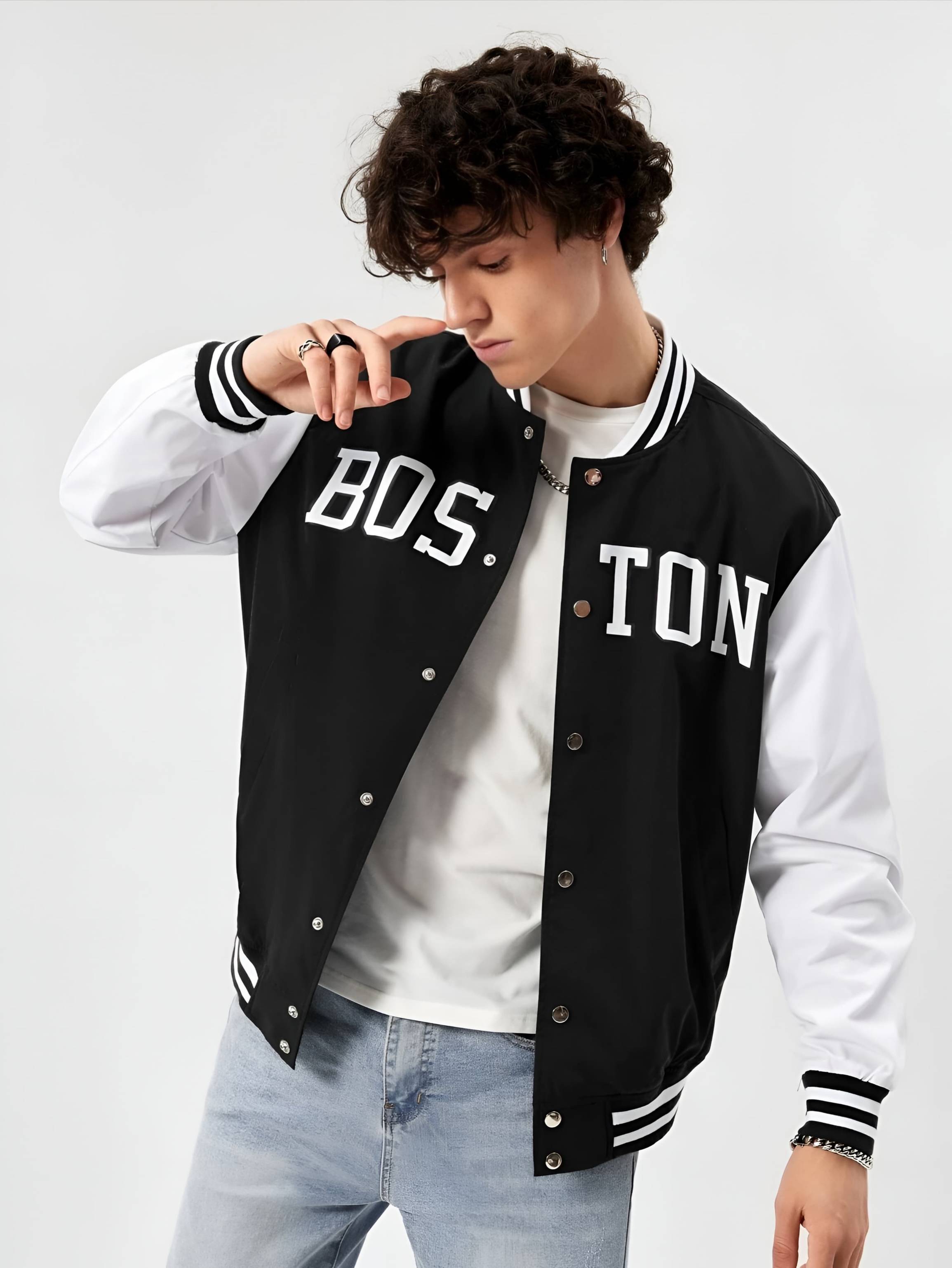 Step up your street-style game with this trendy Boston Varsity Jacket for men. Featuring a classic black-and-white color combination, bold βBOSTONβ lettering on the front, and a timeless varsity design, this jacket brings a perfect mix of retro and modern appeal. Made from premium polyester fabric with soft lining, it offers comfort and warmth for casual outings, college wear, or evening hangouts. Pair it with jeans or joggers for an effortlessly cool look.