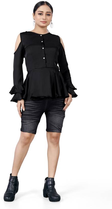 Women Fit and Flare Black Above Knee/Mid Thigh Length Dress