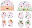 yOS TRENDZ CAP MITTEN BOOTIES SET Keep your little one cozy and comfortable with this Baby Cap & Mitten Set , specially designed for newborns and infants. Made from soft, breathable cotton fabric , this set ensures gentle care for your baby’s delicate skin. The cute cap keeps your baby’s head warm, while the mittens protect tiny hands and prevent accidental scratches , This is beautiful combo pack of primary product Cap and secondary product type