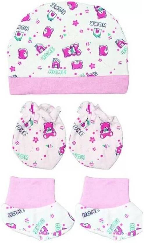 Yos Trendz cap mitten booties set Keep your little one cozy and comfortable with this Baby Cap & Mitten Set , specially designed for newborns and infants. Made from soft, breathable cotton fabric , this set ensures gentle care for your baby’s delicate skin. The cute cap keeps your baby’s head warm, while the mittens protect tiny hands and prevent accidental scratches This is beautiful combo pack of primary product Cap and secondary product type